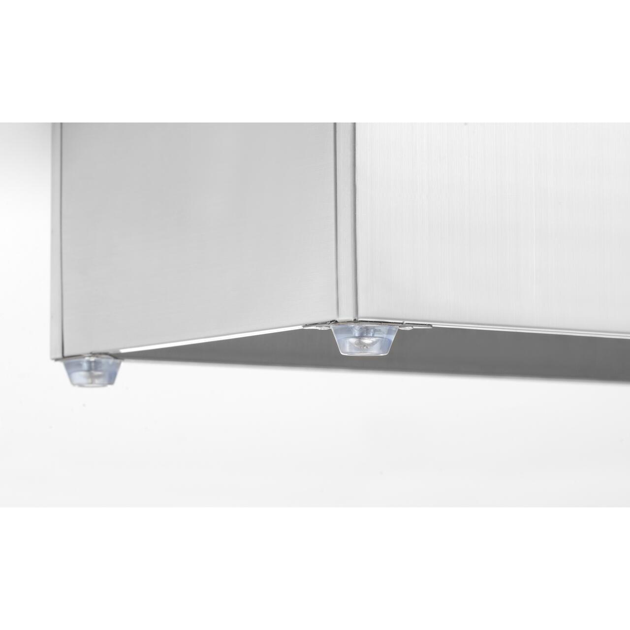 Fabricat din oțel inoxidabil, oferă stabilitate datorită picioarelor antiderapante din cauciuc și oferă opțiunea de montare pe perete pentru o amplasare flexibilă.