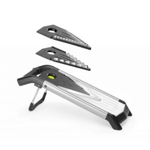 Razatoare mandolina multifunctionala legume fructe, include 5 lame inox in V, grosime taiere reglabila 1-9 mm, Hendi