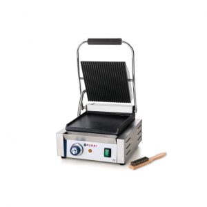 Contact grill profesional, partea superioara striata, partea inferioara neteda, 1800W, termostat 0-300 gr C, suprafata grill 22 x 23 cm, dimensiuni 29x37x(H)21 cm, Hendi