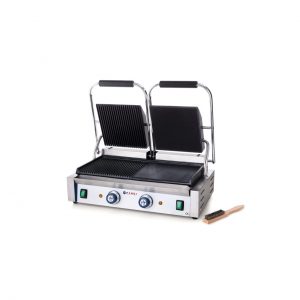 Contact grill Hendi - versiune dubla - partea superioara striata si cea inferioara neteda, electric