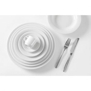 Farfurie Hendi pentru cestile de cafea sau cappuccino, portelan alb, rezistenta la impact, diametru 21 cm, gama Moskau