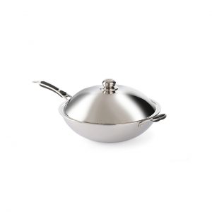Tigaie Wok profesionala, cu capac, 360x inaltime 180 mm, inox, Hendi, potrivit si pt inductie