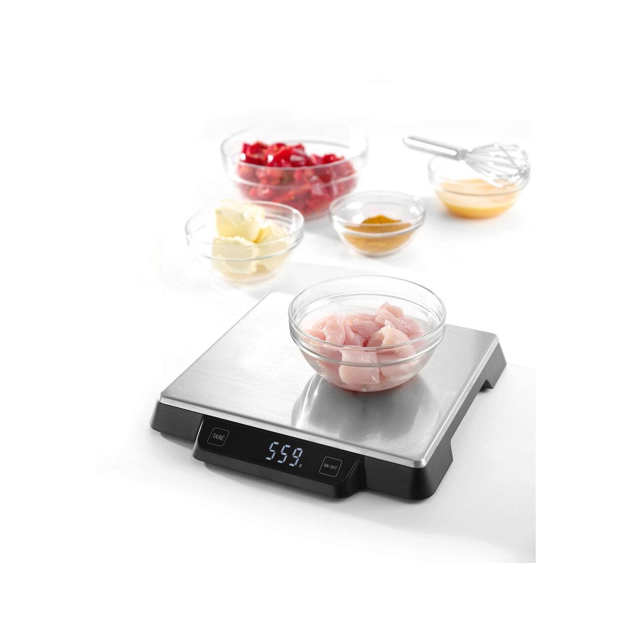 Suprafata fara sudura din otel inoxidabil, carcasa din plastic HIPS cu afisaj integrat.