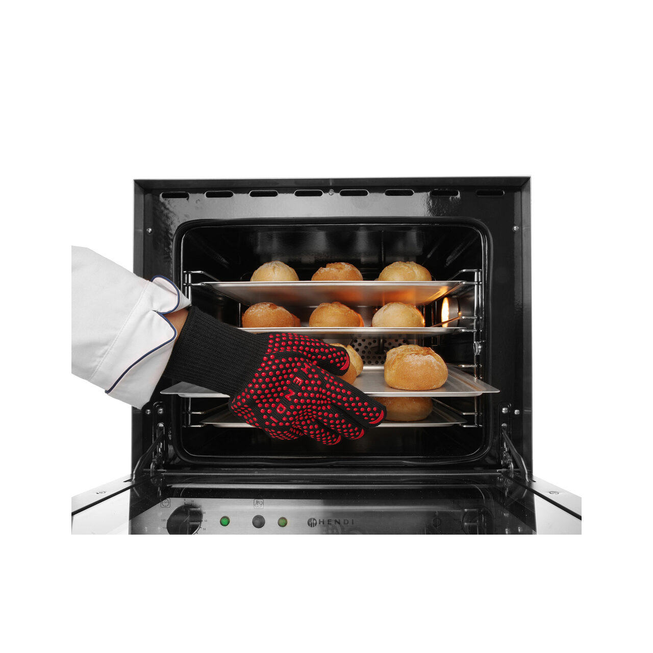 Set 2 manusi bucatarie termorezistenta pana la 250 gr C. Rezistenta la temperaturi de pana la 250 gr. C Manusi protectie, certificate in concordanta cu Directiva Echipamentelor de Protectie Persoane 89/686/EEC. Ambalate cate 2 buc. 30 mm,Universale .