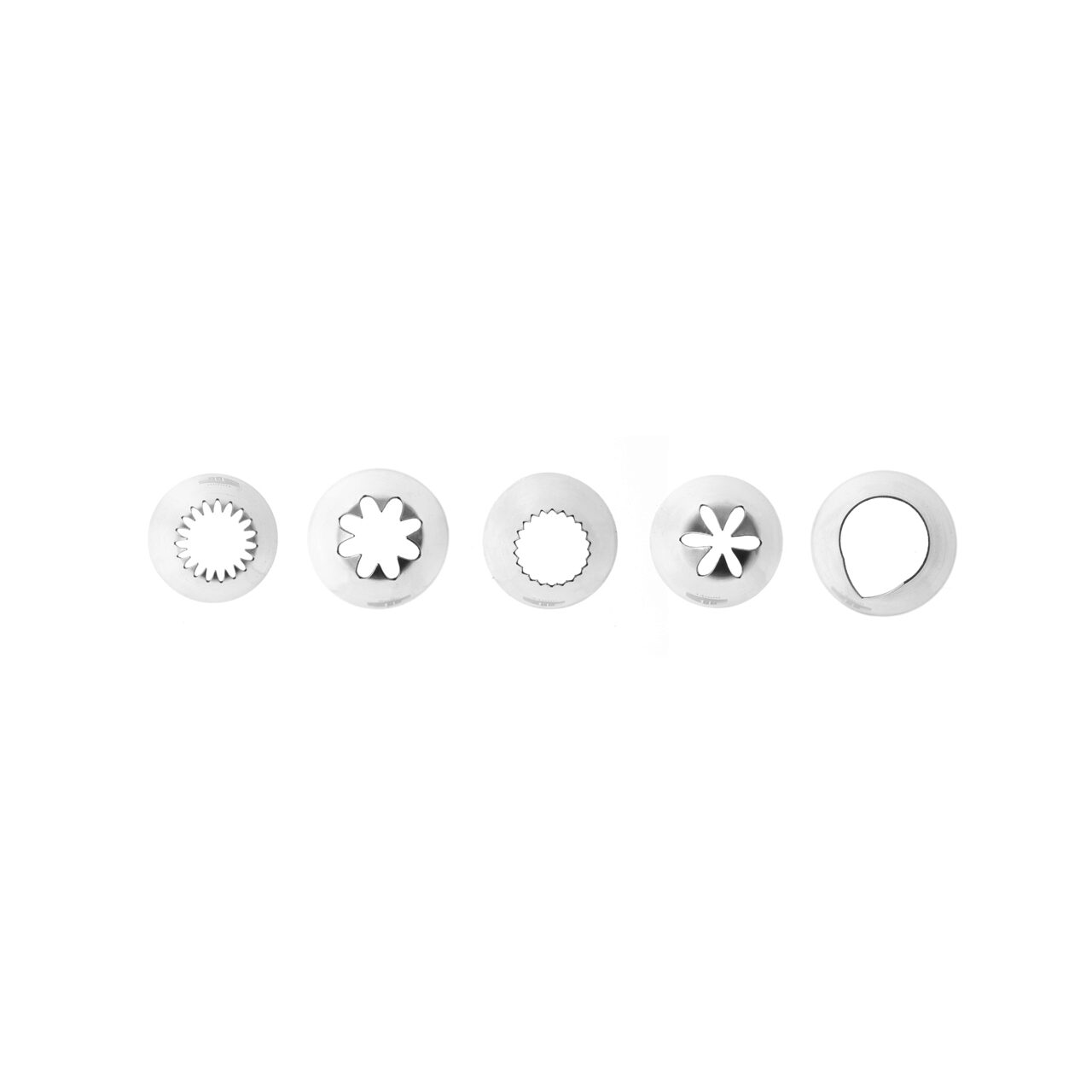 Setul contine 5 varfuri pentru decorare: 2 forma stea 1 forma floare 1 varf francez 1 varf in forma de v
