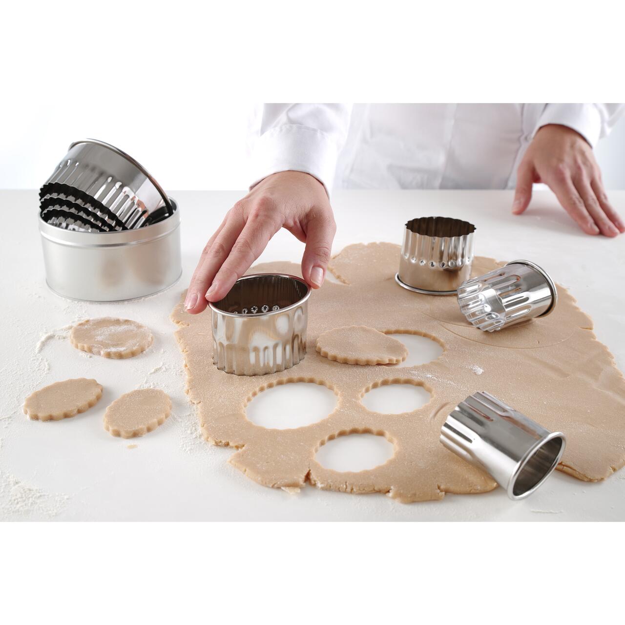 Acest set profesional de tăietoare de patiserie de la HENDI este ideal pentru bucătării comerciale, brutării sau pasionații de cofetărie. Include 8 forme ovale cu margine zimțată, perfecte pentru decuparea aluatului, biscuiților, prăjiturilor sau a altor produse de patiserie.